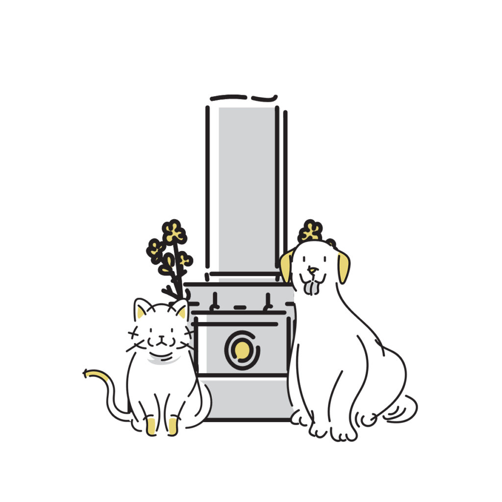 ペット墓石 愛犬愛猫の足跡、心に刻む。ペット墓石で永遠の愛を讃え、優美な石に込めた感謝を永遠に続かせませんか? もうひとりの家族と眠る 個性あふれるお墓をご希望の方へ。フルオーダーメイドの墓石で、愛する故人への最高のオマージュを。豊富な素材とデザインから選択し、名前やメッセージを刻むことで、唯一無二の記念碑が完成。ご家族の想いを形にし、永遠の語り部となります。慎重かつ専念した職人により、高い品質をお届け。大切な思い出とともに、特別な場所を共有しませんか。最高のオーダーメイドで、愛を永遠に刻みましょう。 広がるペット墓石のカタチ。 プレートタイプ シンプルでリーズナブルなプレートタイプ¥50,000~ モニュメントタイプ お庭でも供養できるモニュメントタイプ¥100,000~ 合祀墓タイプ 霊園管理で安心な合祀墓タイプ 造形タイプ お写真から生前の姿を再現する造形タイプ 供養のカタチ 寄り添って眠る 個人墓石供養 個人墓石にご家族・ペットと一緒に納骨できる供養のカタチです。最愛のペットと時間を超えて寄り添う供養のカタチです。 みんなと眠る ペット合祀墓 お寺で管理するペットの合祀墓で供養いたします。継承者や管理が難しく、不安を抱える方もご安心して頂ける供養のカタチです。 思い出の場所で眠る 自宅供養 ご自宅のお庭や仏壇など、最も身近で思い出の詰まった場所で、いつでも思い出せる供養のカタチです。